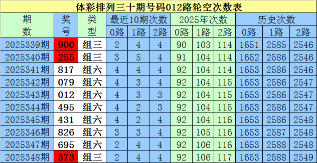 开奖归来:成列三第2025348期奖号为:373,号码012路比为2:1:0。
