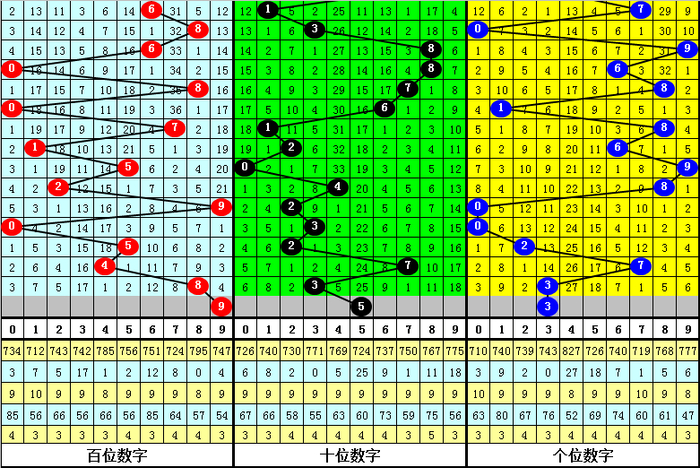 跨度分析:跨度最近3期走势为3-3-5,最近10期跨度012路比为7:1:2,本期良好0路跨度出现,珍惜跨度6。